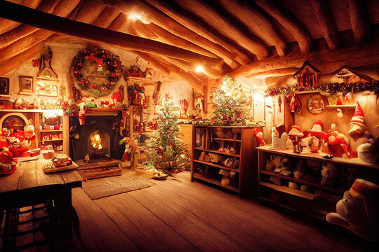 Det sägs att långt uppe i norr, där snön glittrar som socker och vinden viskar hemligheter mellan granarna, finns en liten verkstad fylld av skratt, färger och klossar i alla former.